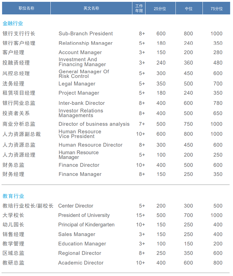天津部分行业职位薪酬信息